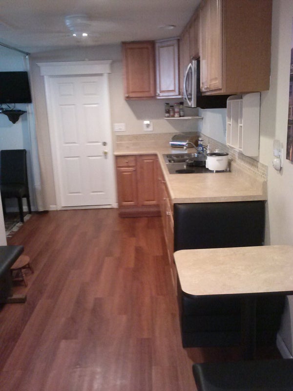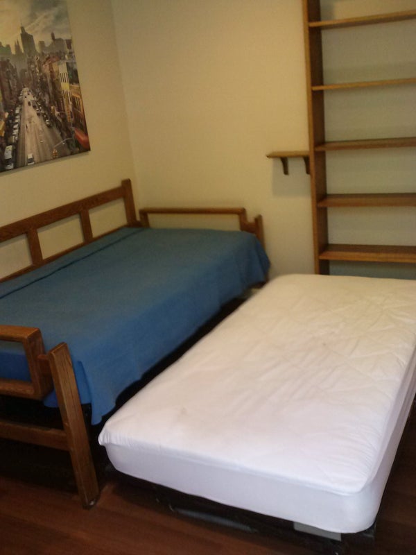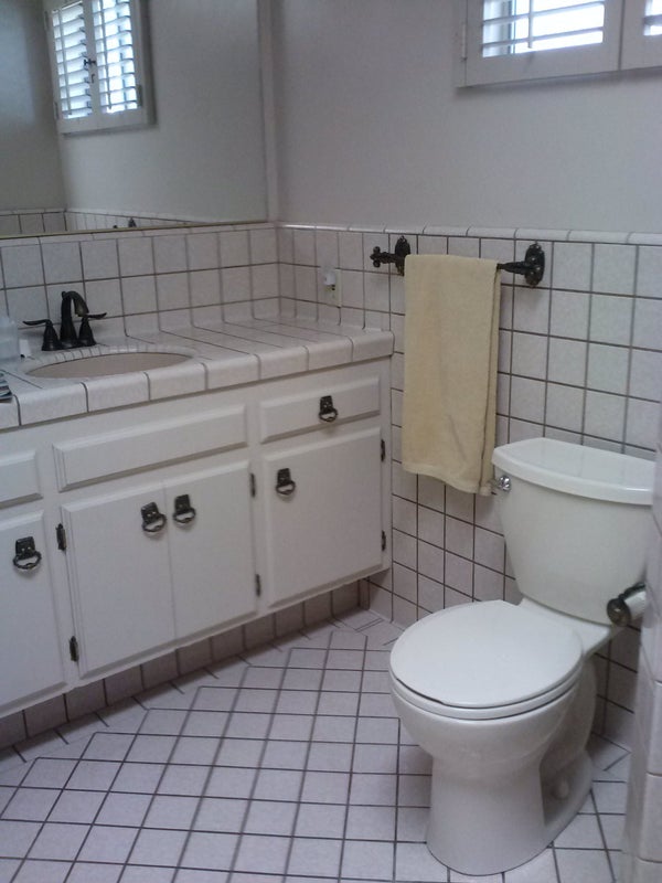 UPSCALE LAKEWOOD VILLAGE. The separate unit has a private entry with multiple amenities i. e. ceiling fan, tall bookshelf, nearby food prep. counter space with personal storage cabinets, microwave, frig, village laundry, large, shared bathroom, ample parking, freshly painted following a seven-year occupancy. The unit boasts a mirrored sliding double door wardrobe closet and includes a single bed, and desk. This available space was once the properties maids/quarters which was owned by LB Superiors Court Judge Mullendore and family for nearly 60 years.
