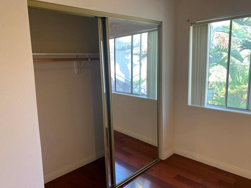 The bedroom has its own bathroom and closet. The shared living spaces are the living room, balcony, mini kitchenette (not a full kitchen only sink, fridge, electric stove, and microwave.) No laundry on site.