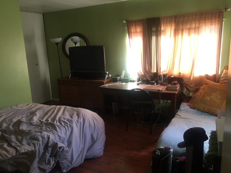 Large Furnished Private master bedroom and bathroom in a house with a big front yard, wood floors, gas stove and washer dryer. On a quiet street with a park and bike path that leads to the beach . All utilities and Internet included. Some storage available in garage. Very walkable neighborhood close to grocery stores and cafés. Also near freeways. No last month or deposit required.