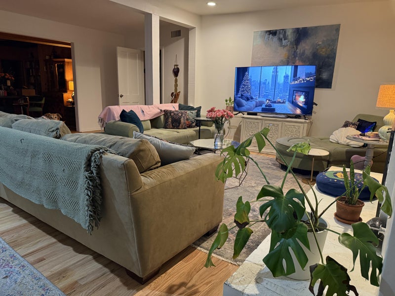 Hi! We are a group of professional females who have been living together for several years. We are seeking a replacement for our 4th housemate and we are looking forward to meeting you! We are located on a beautiful Jacaranda lined residential street on the Westiside of LA. It is very quiet and safe. We all get along and split everything equally. It is and has been a wonderful arrangement and a really good deal! We also live with an adorable small Frenchie named Batman. A little more about us: Jess- 37 years old Business Owner- Pole dance Studio Maeri- 43 years old. I am an artist, filmmaker and production designer originally from Minnesota. Kate- 36 years old Cosmetologist Bedroom and half of the entire front garage for storage. Plus jacuzzi tub and steam shower- shared bathroom with 1 other tenant. Also a yoga room /meditation room. Street parking and driveway parking is easy and plentiful. Other amazing common spaces include a backyard, with fountain and walk in pantry, shared storage all over the kitchen and bookshelves. All utilities are split equally. Must have decent credit to join the lease. Move in Jan 15th, 2026!