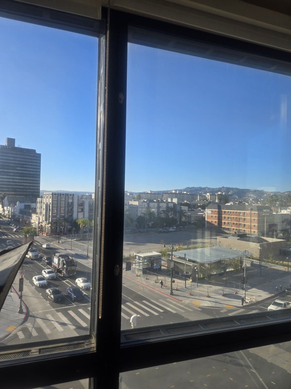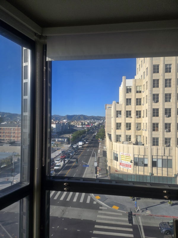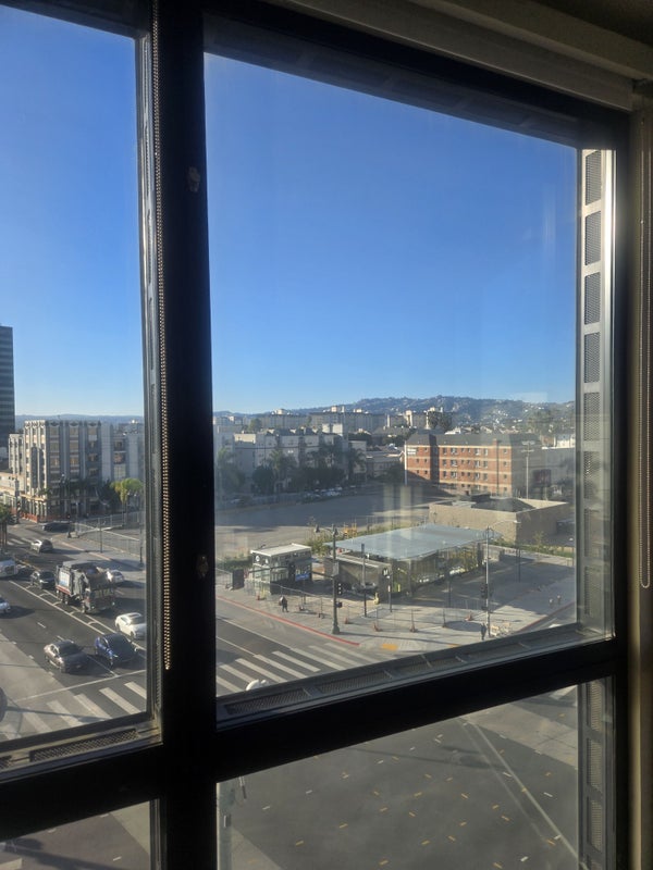 Floor to ceiling windows. View of the Hollywood Hills. You have your own bathroom. Fully furnished, including a desk and work chair. Walk-in closet and balcony. Television included. Parking and gym.