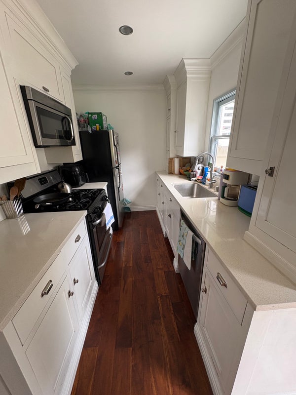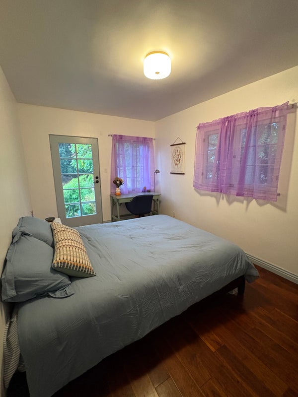 Large furnished bedroom with private entrance in a two-bedroom home on Mt. Washington Drive. Shared living room, dining room, kitchen, and outdoor rooftop patio.