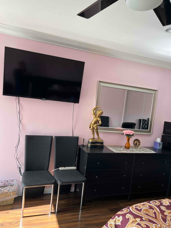 Come spend your time in our lovely house. You will get to stay in the best master VERY SPACIOUS studiolike room with its private bath and pool view in addition to its own private entry. You are welcome to soak in some sun or go for a swim in our private pool (private to the units on the property) and use the barbecue grill . The unit #is a back unit with private luxury bathroom and pool view. It contains one queen size bed with night stands , mirrored dresser, round dining table with chairs, reclining leather couch and kitchenette ( Microwave, electric oven , toaster,kettle and hot plate) Mini fridge with freezer, ’ smart TV with attached Amazon fire stick and antenna). Ceiing fan is also available . Also there is big mirrored closet with bui in organizer . let us know if it’s your anniversary or birthday and we are happy to offer you a complimentary drink (must show ID)!
