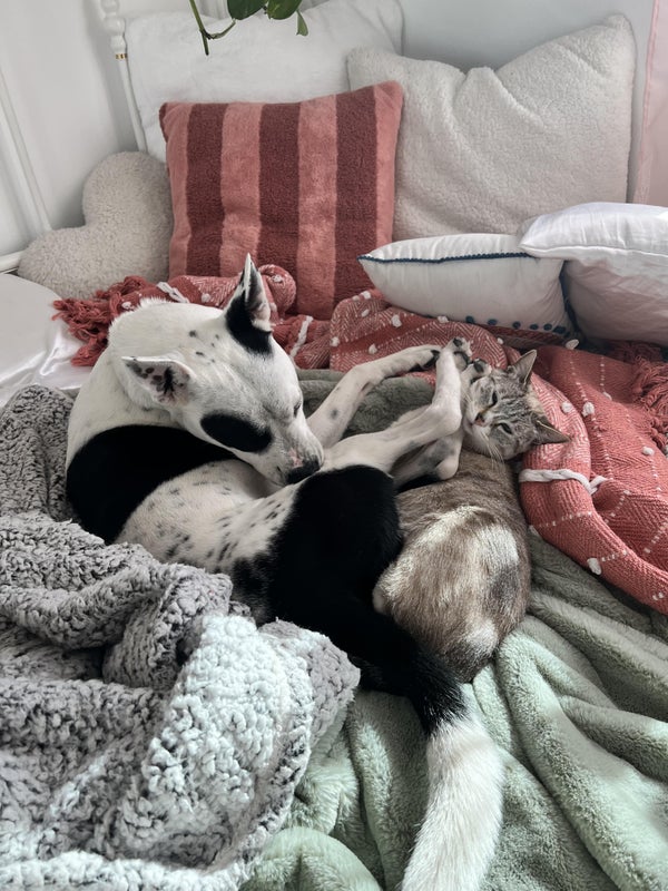We’re possibly open to someone with a cat. There’s already 2 cats & a dog (very friendly) in the house (no more dogs allowed, sorry). If you have a kitty, they need to be spayed/neutered and vet-checked (no fleas etc) before moving in.