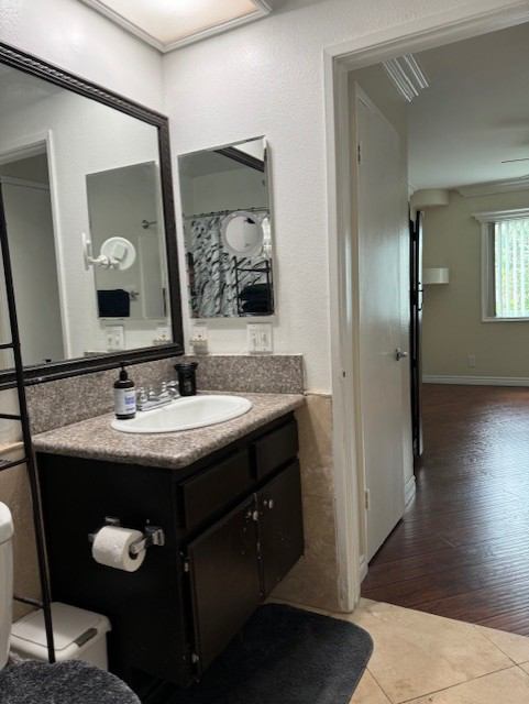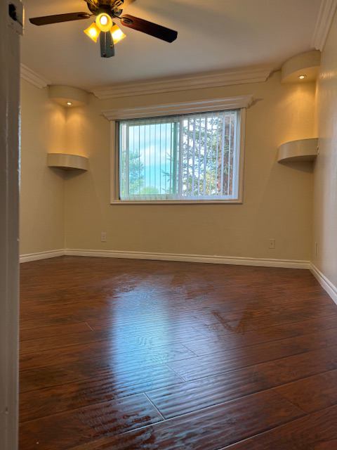 Each bedroom has its own private bathroom. The room for rent has 2 closets and overlooks a beautiful backyard with a pool and jacuzzi. The apartment itself also has a nice balcony/outdoor patio in addition to a secure, gated subterranean parking garage with 2 spaces.