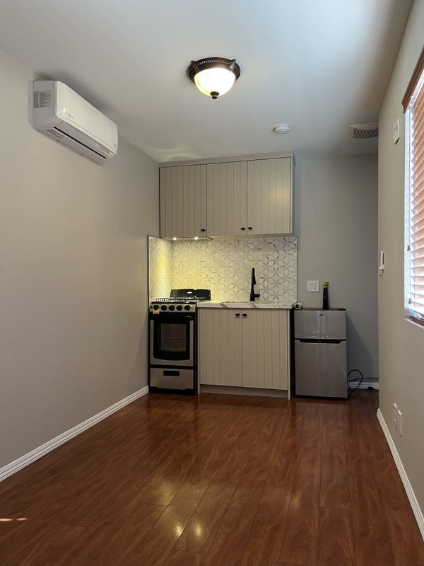 Private, spacious second-floor room available with two large closets. The room is unfurnished and located in a quiet, peaceful environment. Ideal for one person. Includes a private bathroom, kitchenette, wall-mounted air conditioning, and a private side entrance.