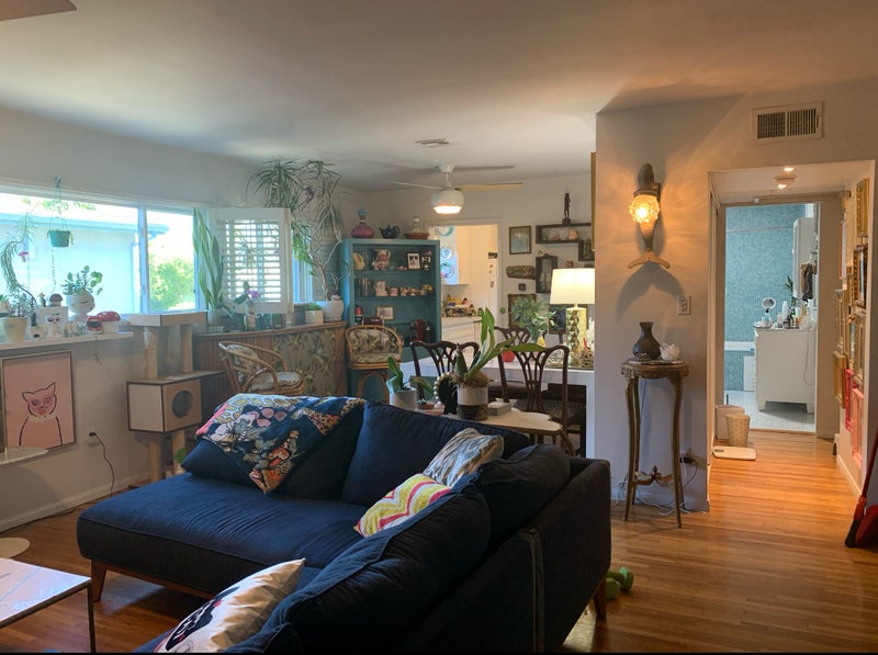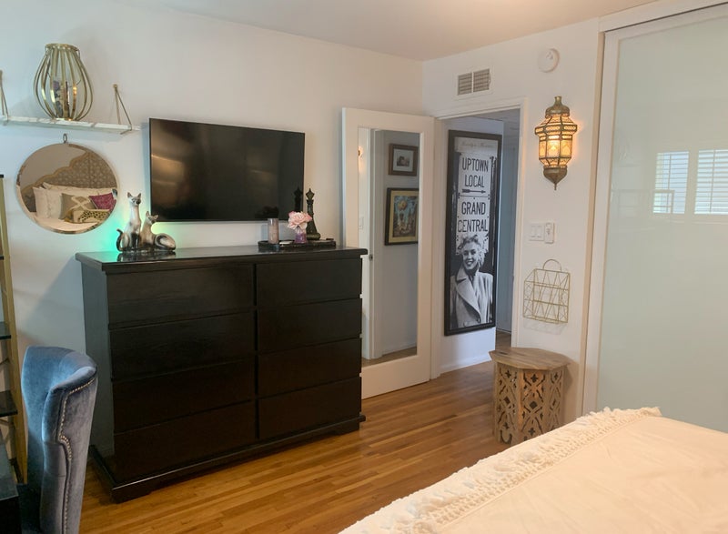 I have a cute Hollywood style condo and I'm looking for a female to rent my master bedrood and share my 2 bedroom condo in Studio City and I'm renting it for $1300 including all utilities. I'm looking for a great person who must be trust worthy, a professional that doesn’t work from home, quiet, clean, non-smoker also must love animals as I have two super cool cats. The building is safe, it is gated with security cameras and has a pool. I have a washer & dryer in my condo, private patio and a shared bathroom that was newly remodeled with jacuzzi tub and bidet toilet. The large master bedroom is furnished and has a tempurpedic electric adjustable bed, desk and with a huge closet, large TV that includes Netflix & Amazon Prime and a ceiling fan. It is Walking distance to Tujunga Village with restaurants, bars and cute shops. This space is also a non-supporting Maga household. It is a 1 year lease with first & last month’s rent and also and a deposit of $800.