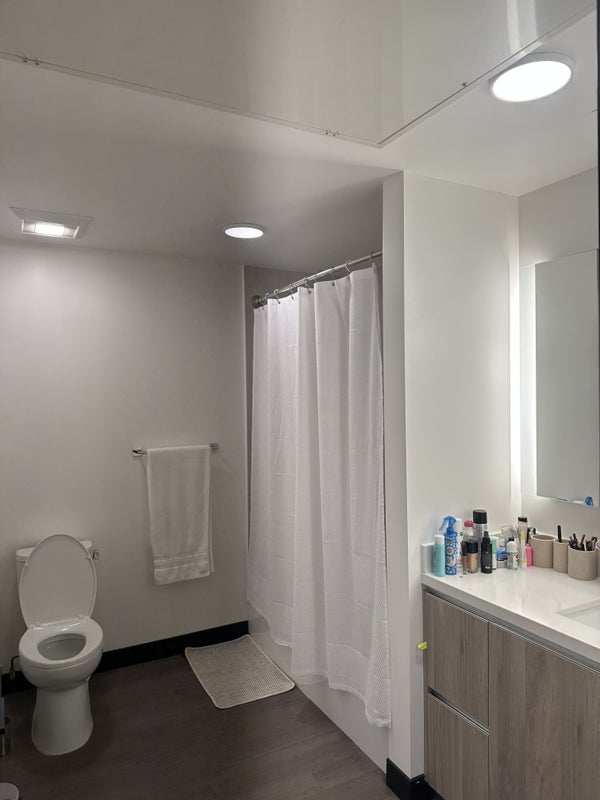 The apartment is over 1,000 sq ft — bright, contemporary, and very spacious. Fully equipped kitchen with all necessary appliances. The unit also features brand new washer and dryer, and a spacious bathroom.