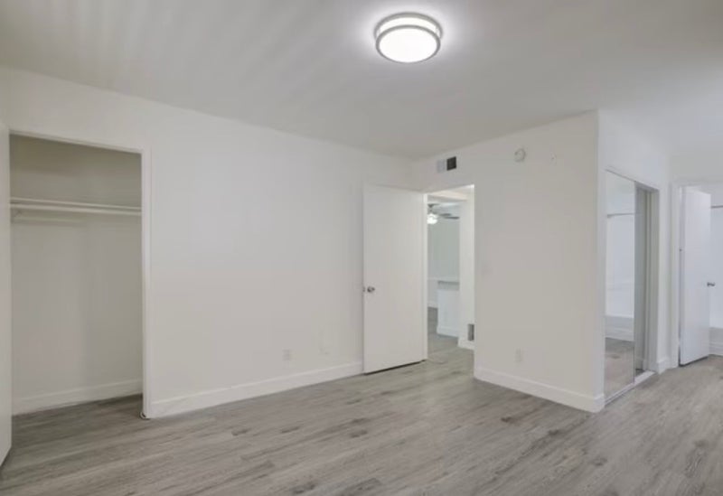 The apartment has 2 bedrooms with their own private bathroom connected to the bedroom. Two closets in the room. Hardwood floors.