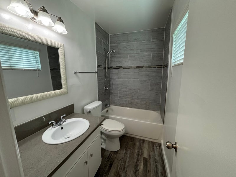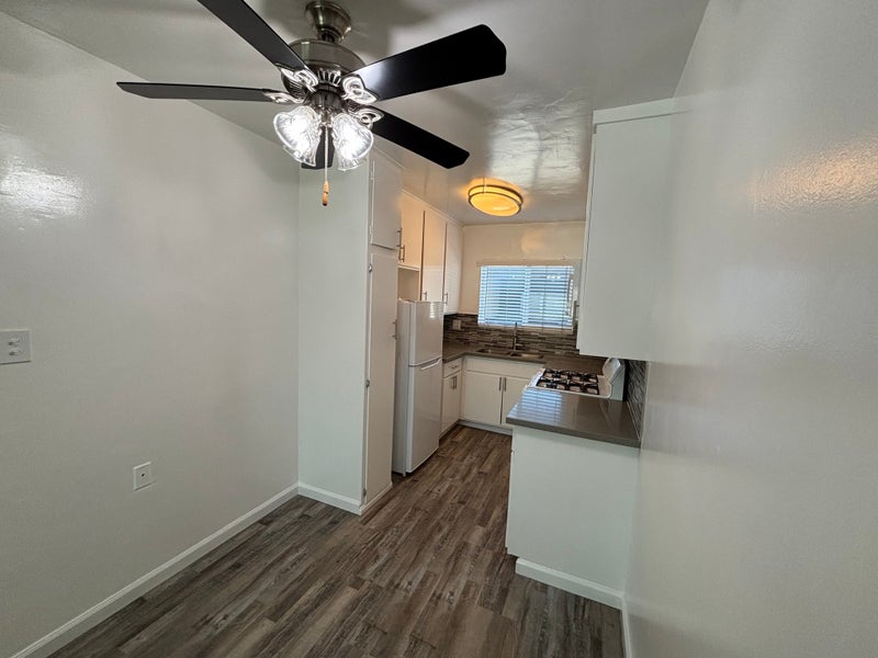 This upstairs unit is spacious and bright and comes with a stove, refrigerator, mircrowave,laminate floors, ceiling fans and blinds. It is newly remodeled.