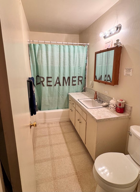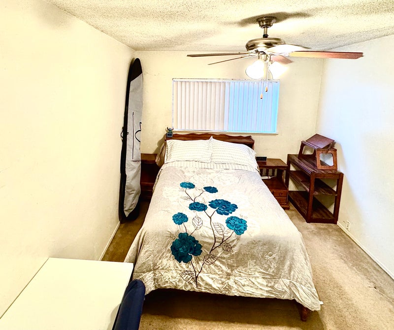 A fully furnished large bedroom and shared bath, with shared living space. All the standard appliances and TVs. Laundry rooms on site and a non-heated pool. Bus pickup on corner. Community pool and park just a 7 minute walk. The market is a 17 minute walk. Freeway on ramp is a quick 7 minutes away.