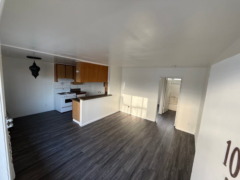 Has a very roomy balcony. One bedroom, one bathroom, fullsize bathroom, living room, kitchen and kitchen nook, there is covered parking, there is a laundry room on site, the parking is also gated, and there are security cameras throughout the property.