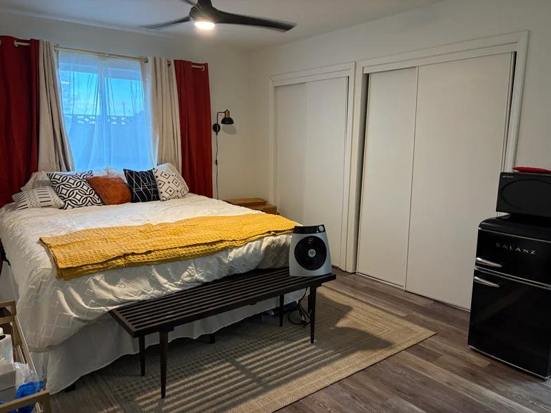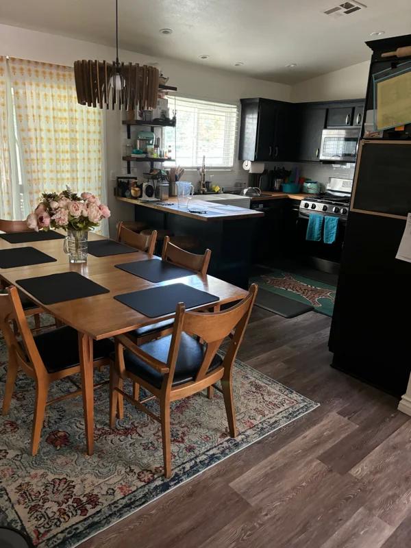 Room Comes with: bed TV nightstands mini fridge microwave pantry cart desk LVP floors overhead fan central AC Included utilities are: gas, electricity, sanitation, and water Must: conserve water, gas, electricity and recycled be alcohol, smoke, substance free and be employed be responsible, respectful, and rational be dog friendly pass background, credit and eviction check ($fee paid to proceder) get renter's insurance (usually $$monthly) provided your own supplies