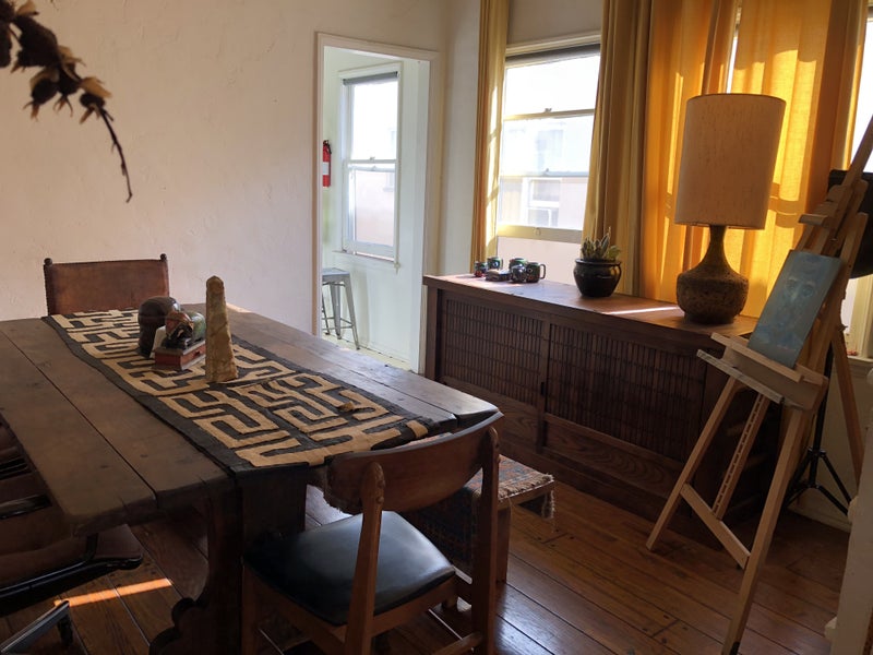 The Home: 1 furnished bedroom available for rent in spacious 2 bedroom 1 bathroom antique art deco Spanish home with incredible architectural elements throughout, in clean, welcoming, tree lined neighborhood of Beverly\Fairfax section of West Hollywood. One of the best and safest neighborhoods in LA. Walking distance from "The Grove" and "Pan Pacific Park". The apartment is a 2nd floor unit with a balcony, separate dining room, large living room with pull-down 150" projection home theater. Has in unit washer\dryer. Area is permit parking after 6PM, and as resident you qualify for parking permit.