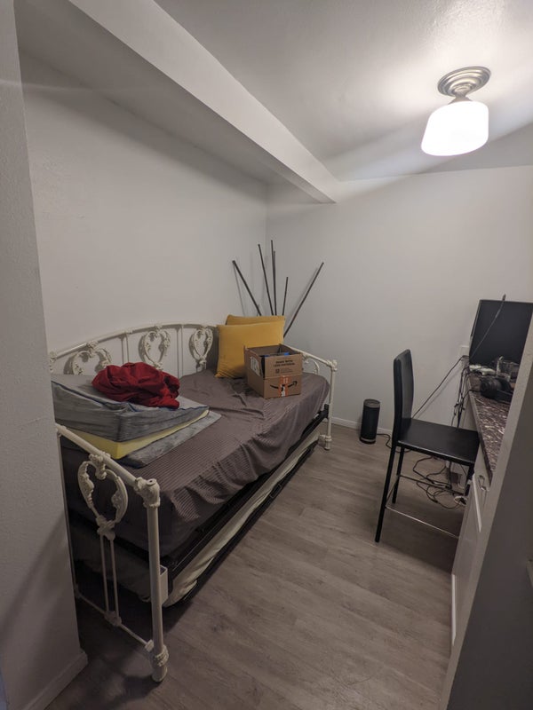 Furnished small bedroom Washer & dryer in unit Smoking allowed on the patio