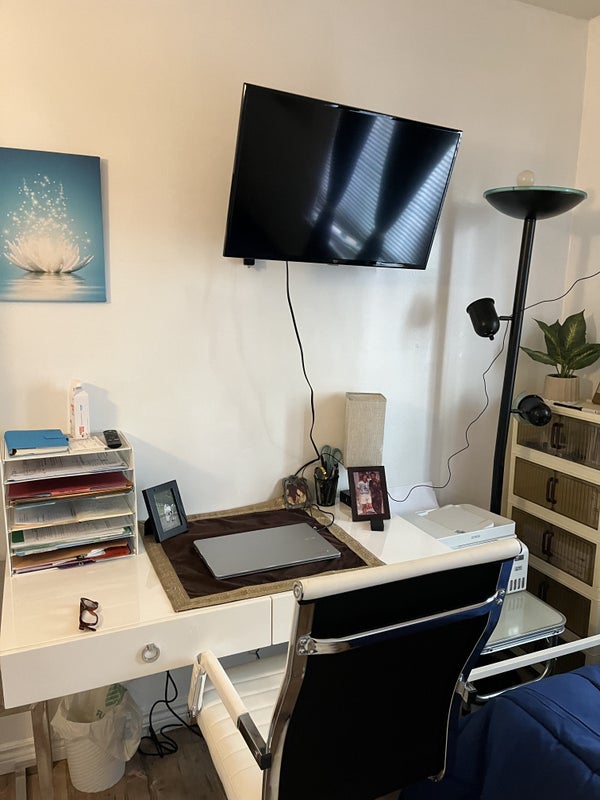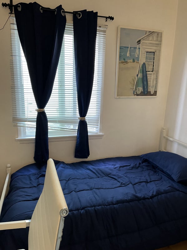 Your room has very expensive new Mondavi lacquer furniture. Freshly painted white semi gloss , tv . It has a good sized closet. It’s a beautiful room especially for a female.