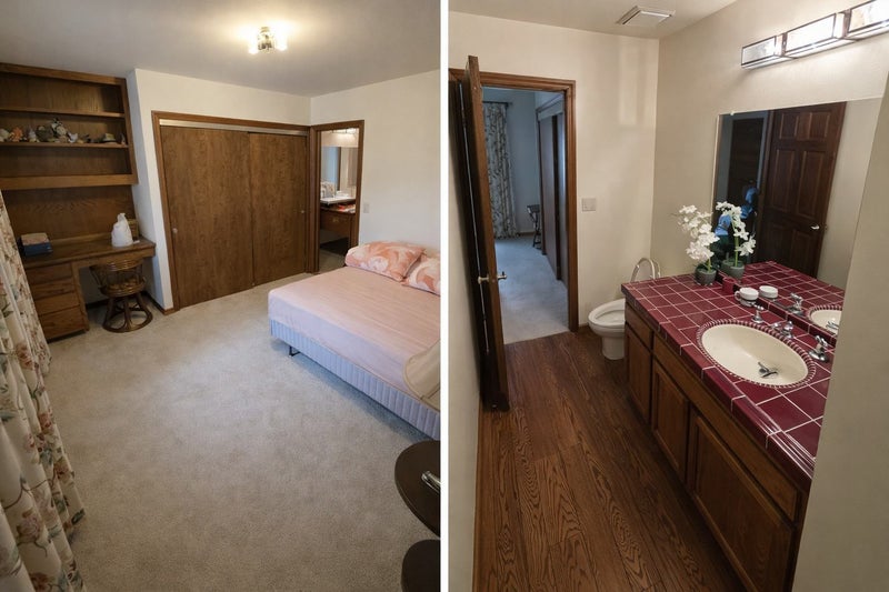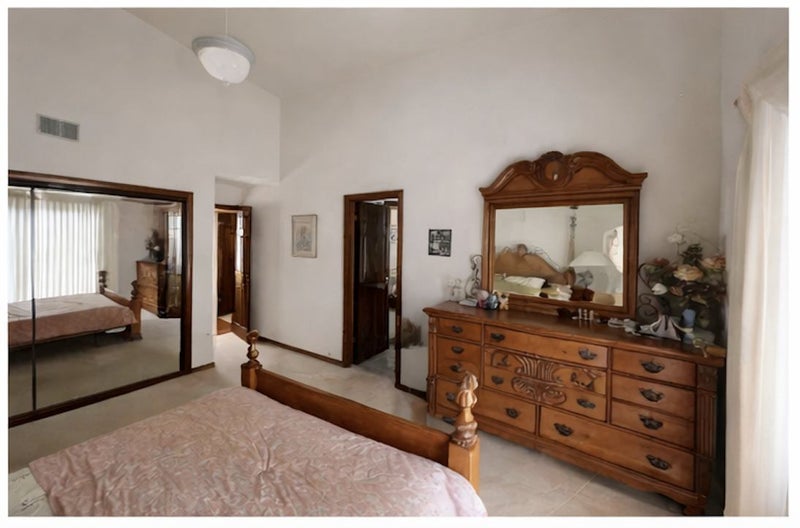 One of the main bedrooms also features direct access to the backyard and pool, creating a unique indoor-outdoor living experience.