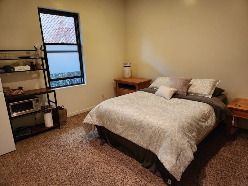 If you're looking for a quiet escape, this room is your spot. Room includes fridge, small convection oven, hot plate, bathroom with shower, queen bed, large closet, and TV. Laundry access right next to room. People LOVE staying here, every renter has said it was best sleep of their life. Looking for someone that understands this is just a room rental, no shared living room or kitchen. Everyone in the house is quiet and respects one another's privacy. Quiet hours 10pm-7am
