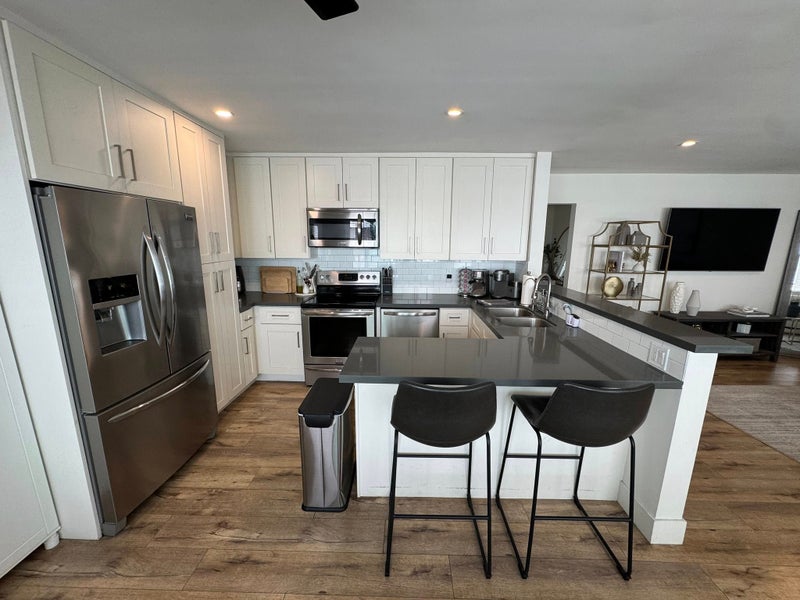 Features of apartment: - Open floor plan with spacious living room & kitchen - Stainless steel appliances (fridge, dishwasher, stove, microwave) - In-unit washer/dryer - Recessed lighting throughout - Ceiling fans in both bedrooms - Large closet with mirrors
