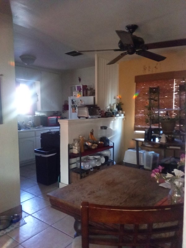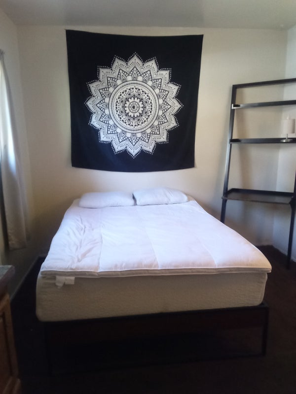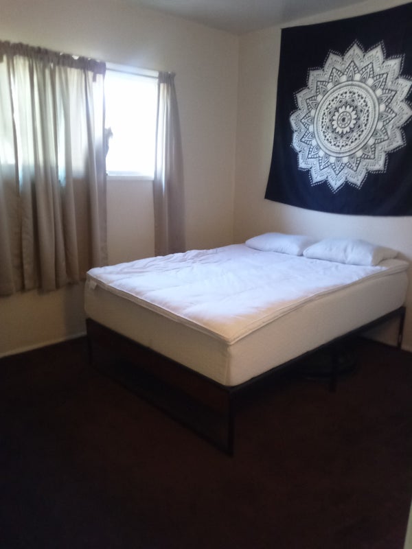 Small house 1 private bedroom shared bathroom kitchen privileges washer dryer private parking must like animals depending if you're a student or working class on the amount of electric bill I am retired and would probably spend more time watching TV so of course I would pay more I am fair and would not take advantage of anyone this is a house and would love to stay only because I m allowed to have my fur babies and feathered friend
