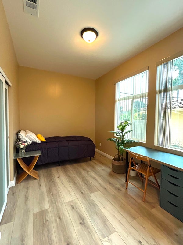 Room Details: - Room condition: Furnished with a desk, twin bed, closet, and plenty of natural light. - Private room and shared bathroom: $1180. - Rent includes access to the laundry room, WiFi, and utilities. - Available starting April 26, 2026 (possibly earlier).