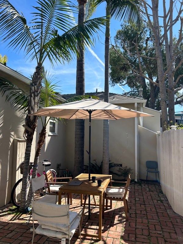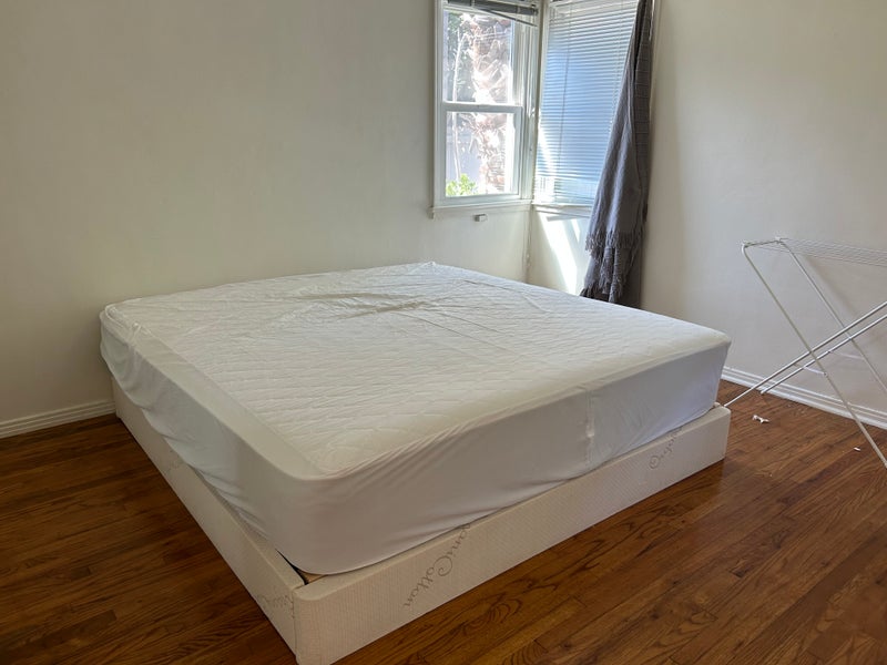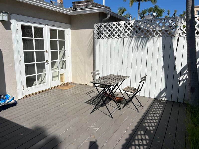 Beautiful room + Private bathroom with high quality organic mattress King Size bed in a charming two bedroom Unit in Santa Monica with two beautiful outdoor patios and a small garden. Two parking spots available and washing machine and dryer.