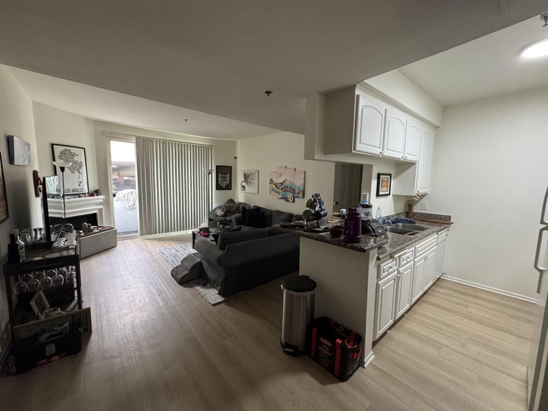 The living room and kitchen are shared spaces with one other tenant—me and my pup!