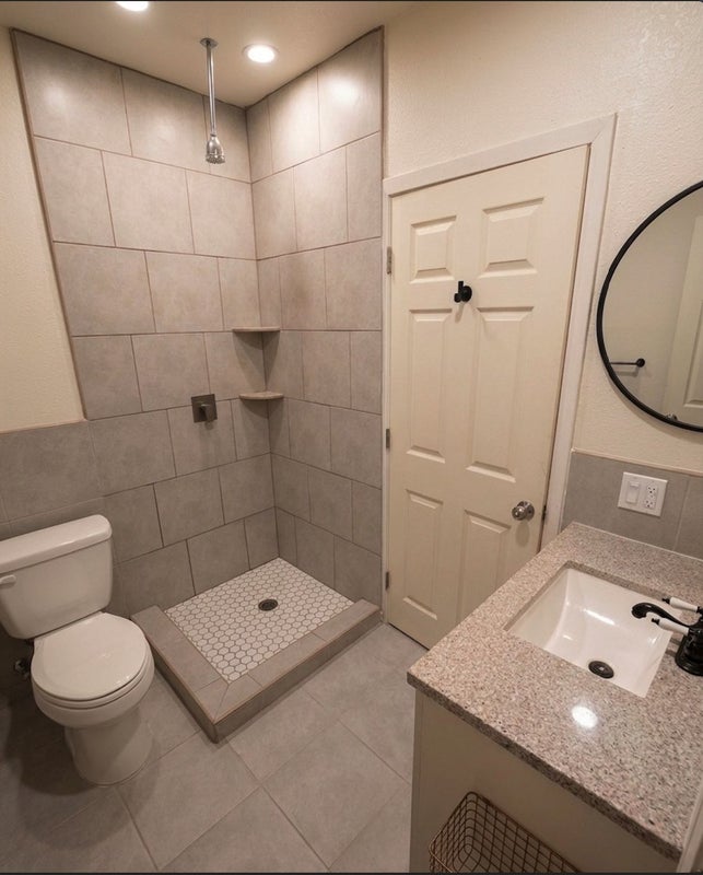 Modern remodeled bathroom with walk-in shower and updated fixtures