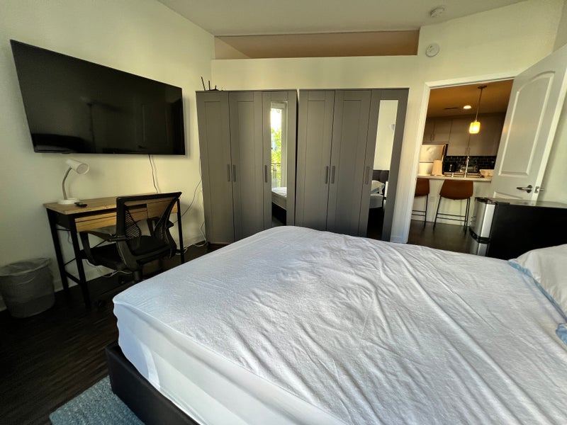 Furnished private bedroom in the heart of Downtown Los Angeles in a fully secured upscale brand new building. Walk to many places like malls, restaurants and Staples Center. Grocery store under the building for convenience.