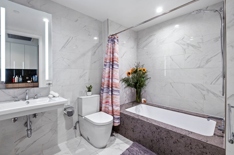 Why Metropolis? 🌟 The Views: Floor-to-ceiling windows overlooking the city. 👨🍳 The Kitchen: Top-of-the-line Bosch appliances & sleek quartz counters. 🛁 The Vibe: Deep soaking tub, oak floors, and super high-end finishes. 🧺 The Ease: In-unit W/D, Nest AC, and 24/7 concierge (they handle all your packages!).