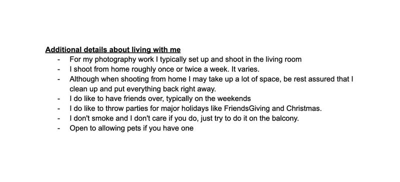 New roommate preferences