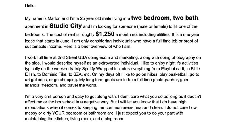 a current roommate