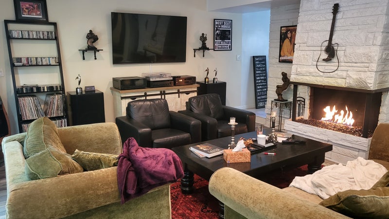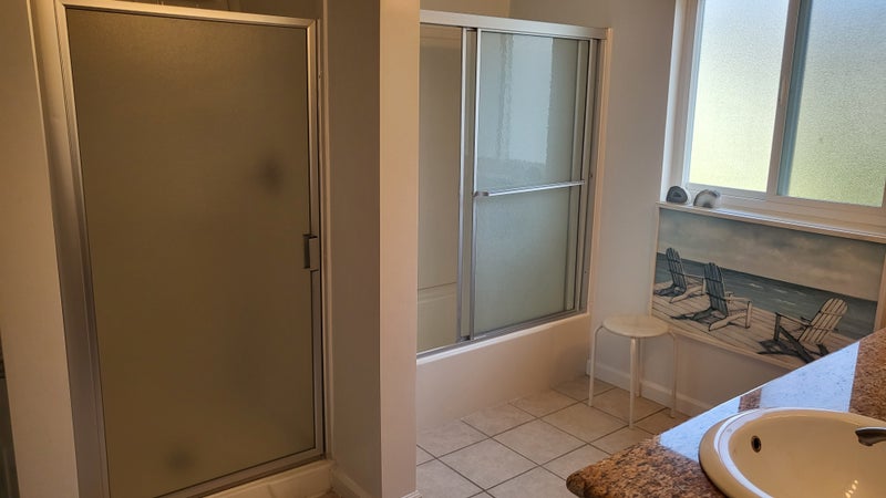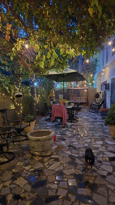 This is the master BR in a 3 BR 2000 sq ft apartment, and the room has an attached private large bathroom with dual sinks, shower stall and separate shower/tub. The room also has a desk work area. The apartment has laundry in unit, a large, beautiful living room with fireplace and 2 sliding doors to a very large private patio area with fire pits and a grill and a swing. The kitchen is large and looks out at the pool/courtyard. The 3rd BR is a gym/music room/yoga room which you are welcome to use, so it will be just the two of us in the unit. This is more like a house than an apartment. It is fully furnished, as is the room, but if you have your own bedroom furniture, I can empty it for you. I work from home and keep normal hours (in bed by midnight, up at 6:30, so prefer no night owls) I have a small friendly dog, so you MUST love dogs. Let's talk and see if it's a good fit, Thanks.
