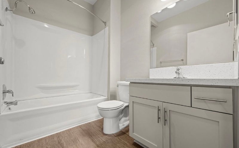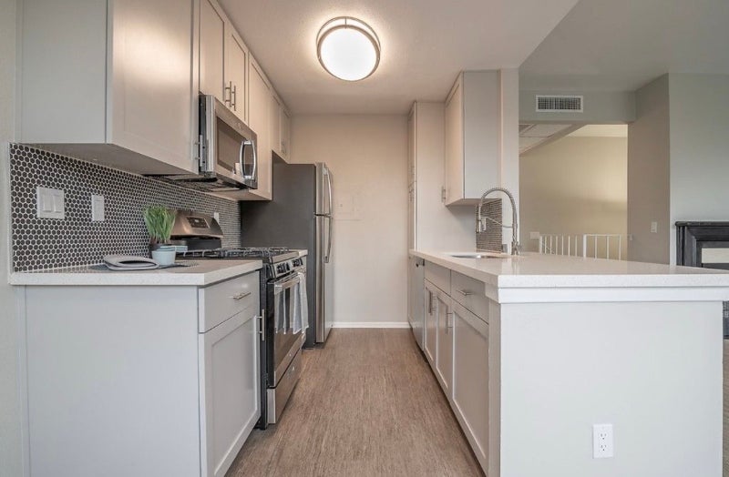 This modern bedbath features quartz countertops, stainless steel appliances, woodstyle flooring, inunit laundry, energyefficient lighting, and ample closet space. Select units include private patios or balconies for outdoor enjoyment.