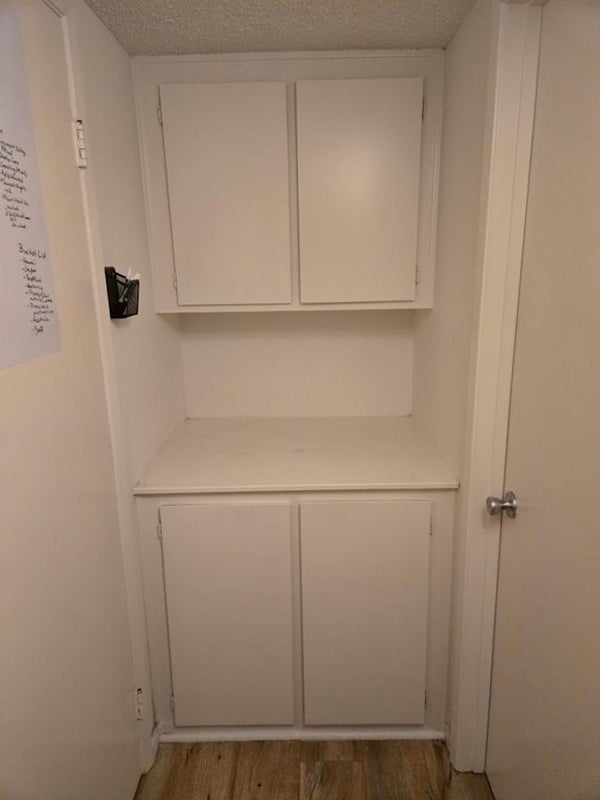 Room measures 11'6"x11'2½“ In addition to the closet in the room, their storage area (cubby and cabinets) next to the ensuite bathroom. Bedrooms are on opposite ends of the apartment with living room, small dining room, and kitchen between. Laundry facilities onsite and use an app-based payment system. Apartment includes covered and gated tandem parking and is located in a quiet, safe area.