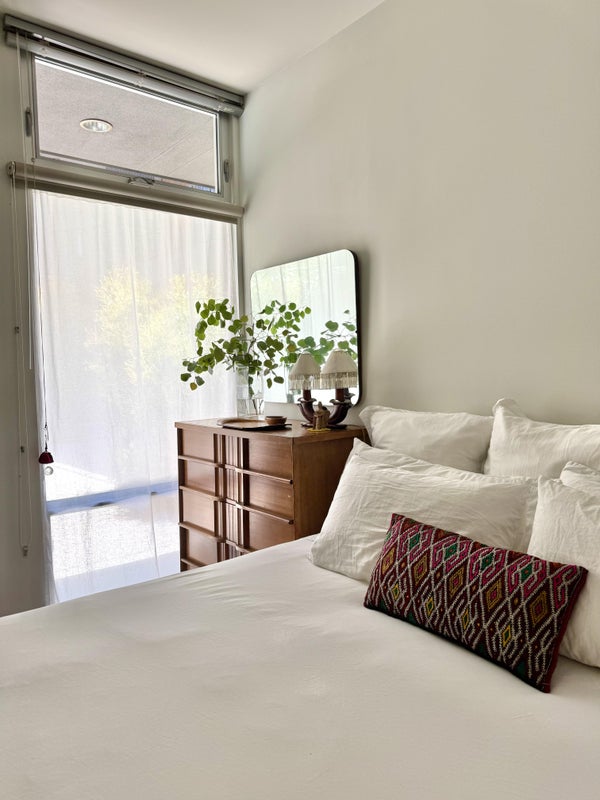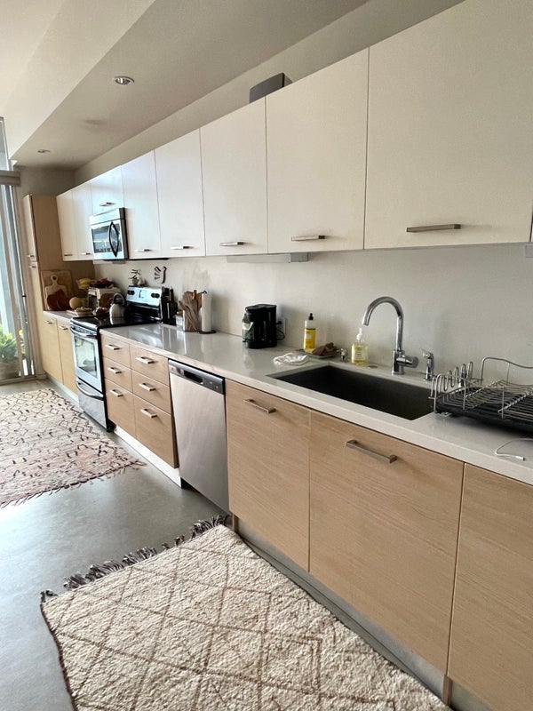 Spacious, high ceilings, concrete floors, large windows, washer and dryer in unit, central ac/ heat, fully equipped with sleek appliances, California Kings size bed and private patio.
