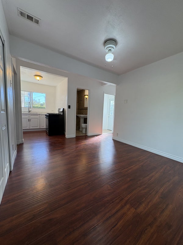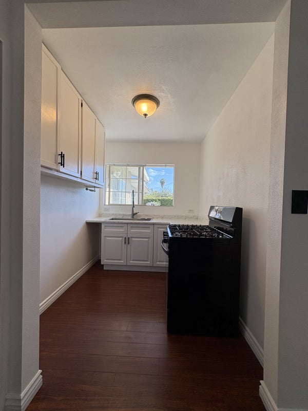 Studio is completely private w/ no indoor access; has it's own entrance; small green area; working stove & refrigerator; large closet; cupboard; bedroom; kitchen; half-bathroom.