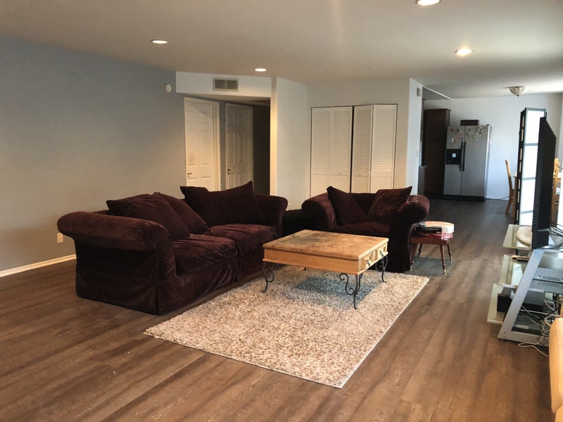 Large private room w/ private bath in giant 4-bedroom apartment available March 1. Quiet, gated apartment with underground parking. Huge living room and kitchen, large bedrooms, washer/dryer, central heat/AC, fireplace, garage parking and a semi-private patio—all just steps from shops and restaurants on Melrose and near The Grove. Bedroom is unfurnished with a large window, a wall-mounted TV and a large closet. The rest of the apartment is furnished. Kitchen includes refrigerator, dishwasher, 2 microwaves. Apartment is shared with 3 roommates (30s to 50s) who are quiet and respectful, and clean up after themselves. We expect the same. All genders welcome. Bills average $125/month, including gas, electricity and Internet. No smoking, no drugs, no pets. Not a young party house, and we strongly prefer someone with a full-time job outside the house M-F. Month to month. Credit/background check required. $1400 rent + $1400 deposit.