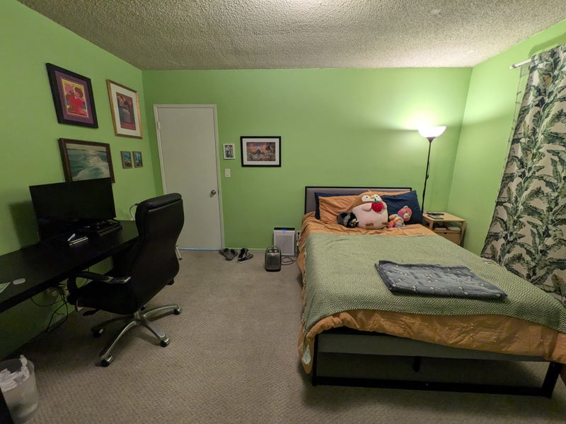* Freshly painted about 4 months ago (our landlord lets us paint our rooms, the previous roommate chose light green and it's a lot cuter than the photo! Captures a lot of light but I am open to repainting if needed.)