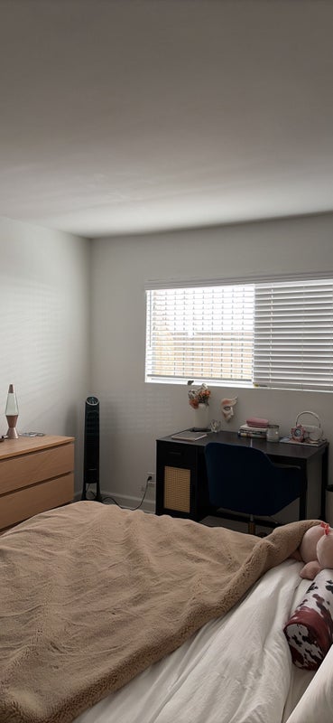 I am looking to sublet the master bedroom in a 2 bed 2 bath. Sublease is May 1st- August 31st (with opportunity to extend lease), and it is in a very safe area. It is a private bedroom with en-suite bathroom. There is a massive closet as well! I am a UCLA student studying full time so I won’t be home too often. The rest of the apartment is furnished and laundry is on site next door. There is 1 parking spot available for you, a chill patio, a dishwasher, and working AC and heating.