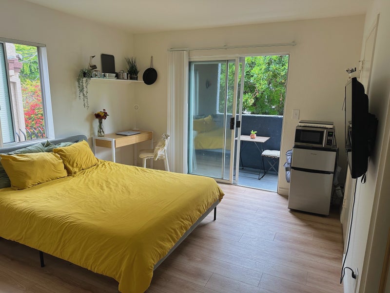 Located conveniently 6 minutes away from the LAX airport and 8 minutes away from the beach, this quiet and calming space is great for solo/business travelers. You will have a huge balcony all to yourself where you can enjoy the peace and quiet of our beautiful neighborhood, Playa Del Rey.