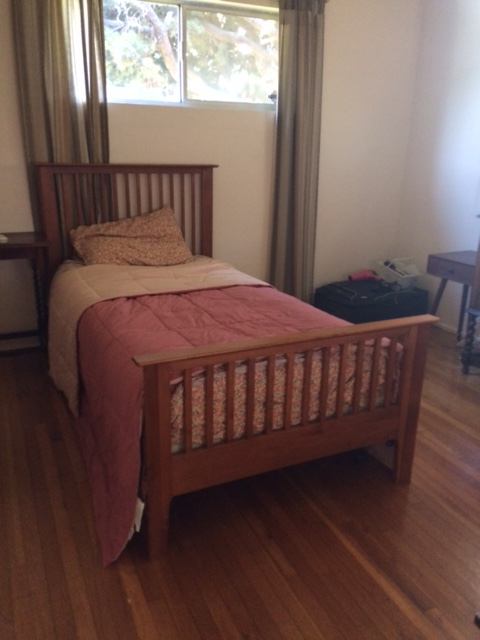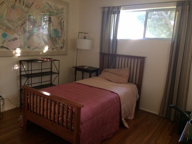 LOVELY FURNISHED BEDROOM for rent in local artists' home, $1200. mo, includes wifi and utilities and alarm cost. Shared Bathroom. Quiet, safe residential neighborhood, street parking. Bedroom: single bed. dresser, desk, bookshelf, 2 lamps and bedside tables. Kitchen use: dishwasher, oven, microwave, washer/dryer. House has an open floor plan dining and living area together with a wonderful deck off living room for sunning and studying. Walk to bus stop, shopping, theaters. Close to LAX. (perfect for flight attendants.) Close to Otis college of Design, LMU, UCLA & Pepperdine in Howard Hughes center. I prefer someone who is mindful and respectful of others and that this is a shared space. Rent $12000. monthly, security deposit, $1200. key and alarm fob $25.00 deposit. References check, background and credit check. (renter pays)