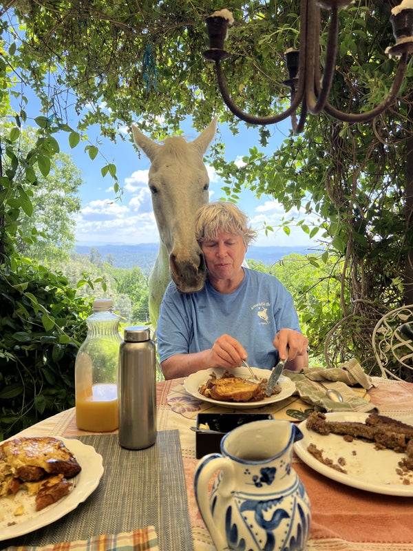 My small farm is home to my rescued animals, horses, goats, dogs and cats, of course. There are also chickens, ducks, peacocks and rabbits. Set in the foothills of the Sierra Nevada mountains, we have views forever and 4 seasons. The garden provides yummy veggies and helps to feed the animals too. Our small town has loads of personality and is a gateway town to nearby Yosemite National Park. There is a lot going on, music on the green, a farmer's market, loads of music festivals and concerts and of course hikes galore for wildflowers, vistas, waterfalls etc