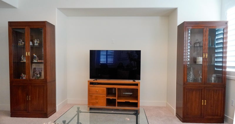 The house’s first floor has an open-concept kitchen, dining room, and living room area: the kitchen having a very large alabaster island, which allows for food prepping and casual dining, all-white cabinets, and stainless steel appliances. There is a formal dining room, all-wood floors, and a living area with a large 65" TV, sofa, and piano. Most of the furniture plus large and small appliances are furnished; so are a new large TV (65”) and piano. The first floor also includes a laundry room with a matching washer and dryer. All in all, the first floor is approximately 1400 q, ft.
