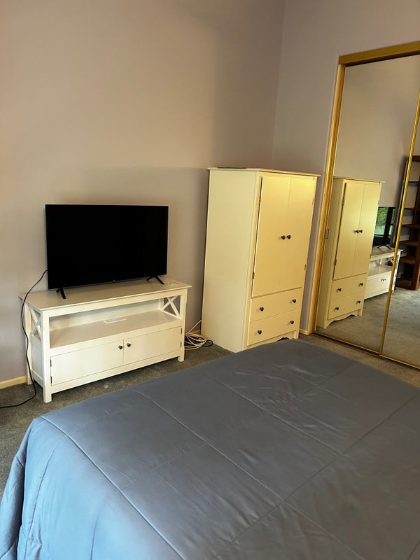 Asking $100 towards utilities each mid-month and a security deposit of $1000 move in. In unit washer/dryer, Roku TV in room, access to pool and jacuzzi. Newly renovated kitchen Miles of hiking and biking trails to catch across street and many parks nearby. Also, nearby shopping, restaurants, and movie theatres Light cooking and access to microwave. Cleanliness necessary. Off street parking within development. No pets, no couples, no overnight guests, No drugs, and definitely Non-Smoker