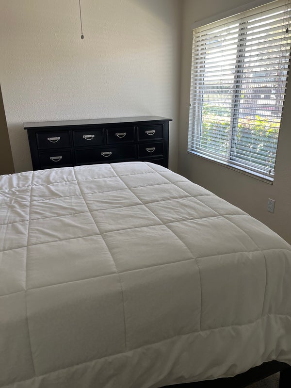 Hello, The bedroom. I’m renting is furnished with a queen size bed. Also a shared bathroom with tub and shower all utilities included also washer &dryer It’s in a gated community with a beautiful lake pool and Jacuzzi. You feel like you’re in the mountains, beautiful location, close to restaurants and shopping. Very quiet and serene