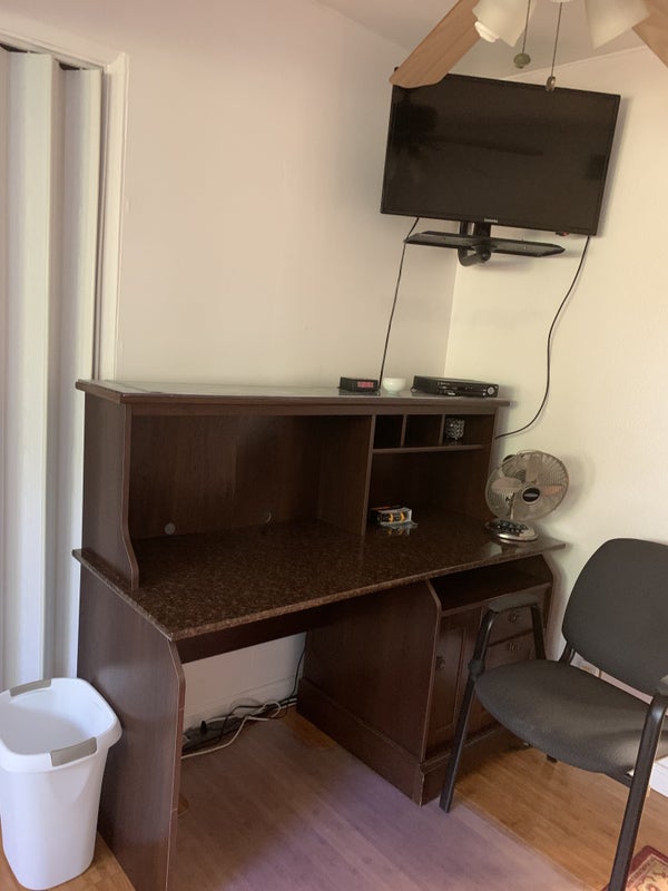 Shared bathroom. Bedroom is fully furnished with a full bed, bedding, towels, desk, office chair, chest of drawers, lamp and closet. No overnight guests. Free utilities, high speed internet and cable tv. Full kitchen privileges, New washer and dryer. No Pets and a Non-smoking environment.