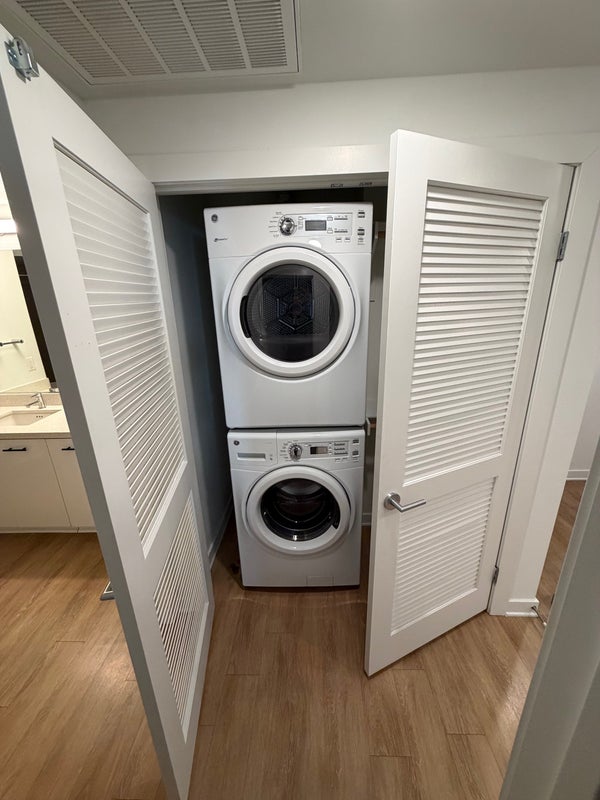 The building has great amenities: pool, gym, and secure garage—basically everything you need.