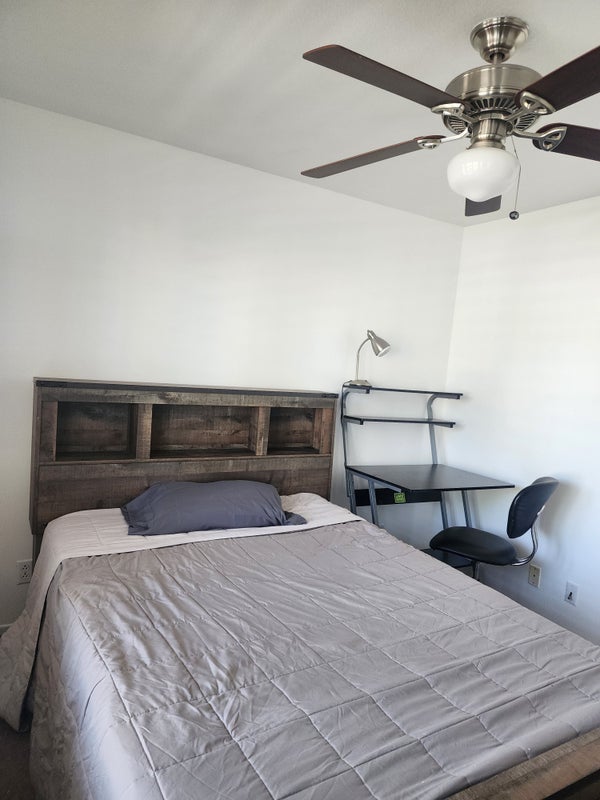 Furnished room upstairs In a clean and friendly household, sharing a bathroom . Parking is always available. No smoking, no pets, no overnight guess. Light cooking, laundry room available . Great neighborhood clean quiet
