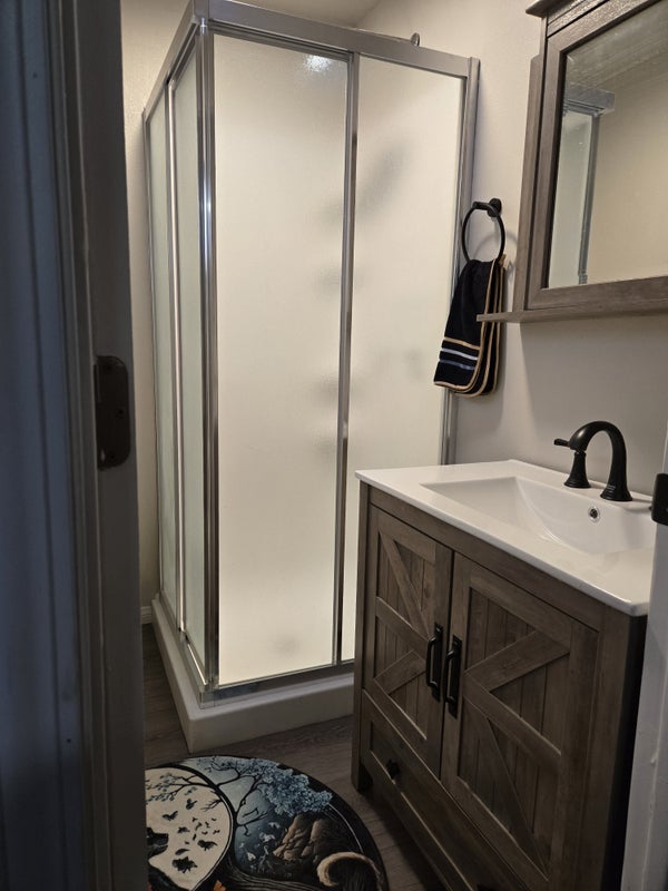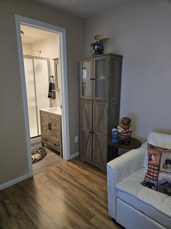 About the Studio: A room addition was recently built adding a small connected bathroom. The remodel of the entire space includes all brand new: (paint, wood flooring, doors and trim, ceiling fan, refrigerator, sofa, table, chair, and entertainment center including a 55” 4K smart TV) This is a separate, completely private unit with its own entrance Tenants are welcome to rearrange or bring their own furniture and decor